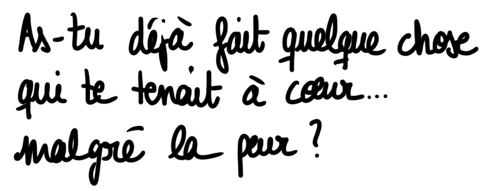 Par exemple, il m’arrive souvent de partager que je n’attends pas de ne plus avoir peur d’une situation (qui me donne envie) pour m’y confronter. J’essaye de faire avec la peur, avec l’inconfort et j’accepte aussi que parfois ce n’est pas possible, pas le moment, et que c’est ok, en conscience.